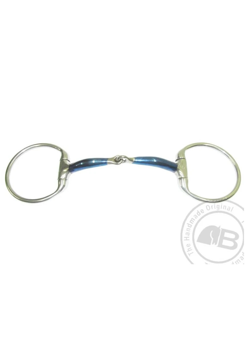 The Eggbutt cheek piece prevents pinching of the lips and gives a solid feel against the side of the face. It also prevents the bit being pulled through the mouth. The release is slower than the loose ring and also introduces light poll pressure. The Lock Up snaffle removes the nut cracker action of the conventional snaffle, meaning no pinch and less pressure on the bars.