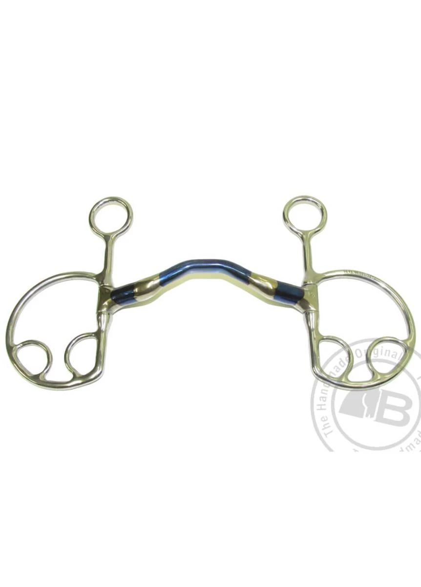 The rein slides on the Dee shaped bit ring. If the hands are lowered prior to pressure being applied to the reins, the rein will slide about an inch and the bit will assume roughly a 45° angle in the mouth. Causing the mouthpiece to act in a downward and backward motion on the lower jaw, this is complemented by a downward pressure on the poll, giving the bit a lowering action. There are 3 rein settings which increase or decrease the pressure.